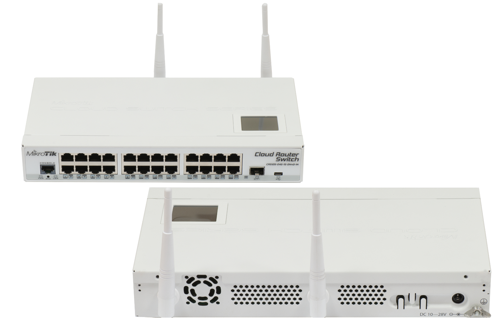 8x Gigabit Smart Switch, 1x SFP cage, LCD, 802.11b/g/n Dual Chain wireless, 600MHz CPU, 128MB RAM, Metal desktop case, RouterOS L5, supports 10-57V, 802.3af/at compliant