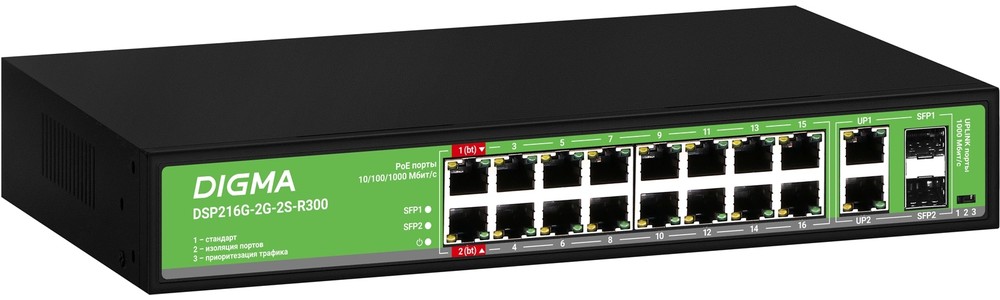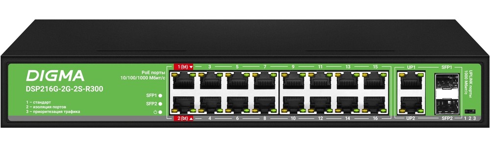 2 x RJ-45 (1 Гбит/с), 2 x SFP (1 Гбит/с)