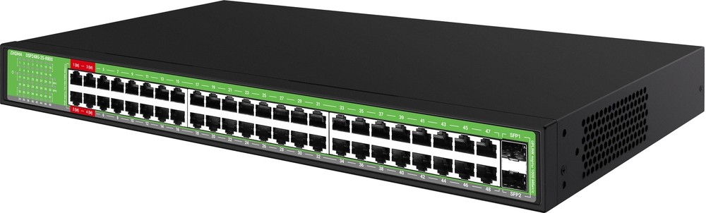 1-4 порт поддерживают питание стандарта 802.3af/at/bt (выводы питания 1/2/4/5+,3/6/7/8, 90Вт), 5-48 порт поддерживают питание стандарта 802.3af/at (выводы питания 1/2+,3/6-).