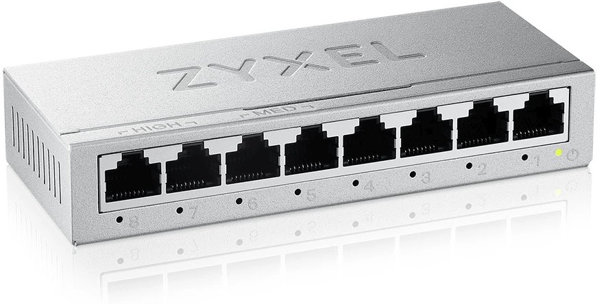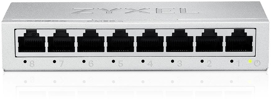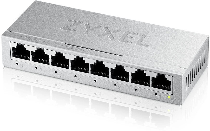 Коммутатор, блок питания, резиновые ножки, набор для настенного крепления, предупреждение о безопасности.