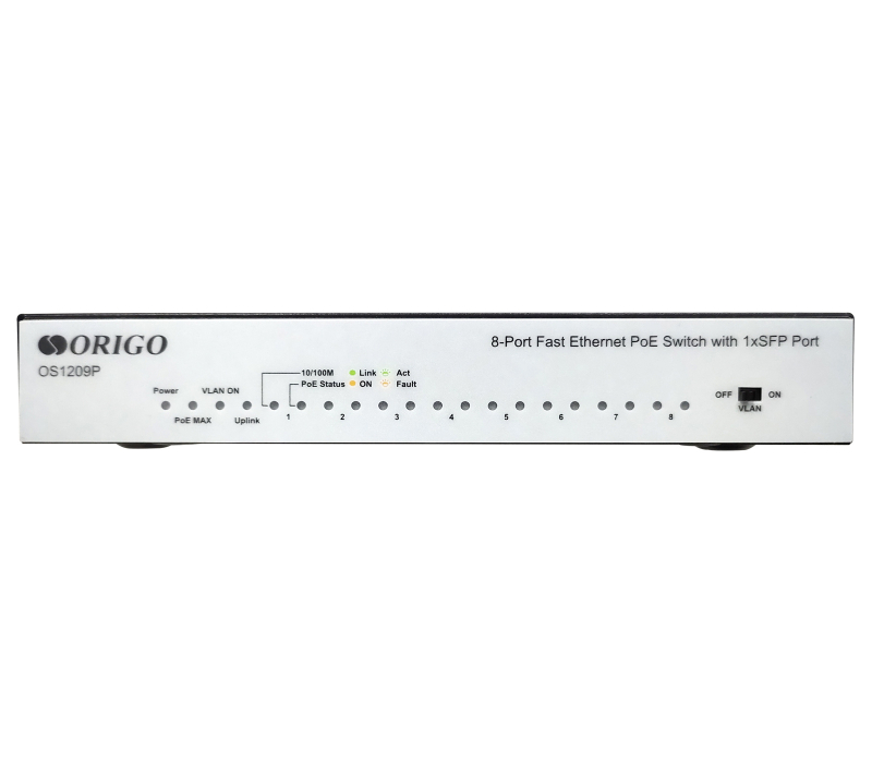 Коммутатор ORIGO OS1209P/80W представляет собой простое и надежное в эксплуатации решение для организации удаленного питания камер видеонаблюдения, беспроводных точек доступа, IP-телефонов и прочего PoE-оборудования.