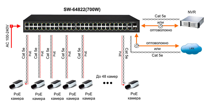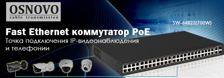 Коммутатор SW-64822(700W) руководство по эксплуатации; кабель для подключения к сети AC 220V; набор креплений для 19“ стойки; упаковка.