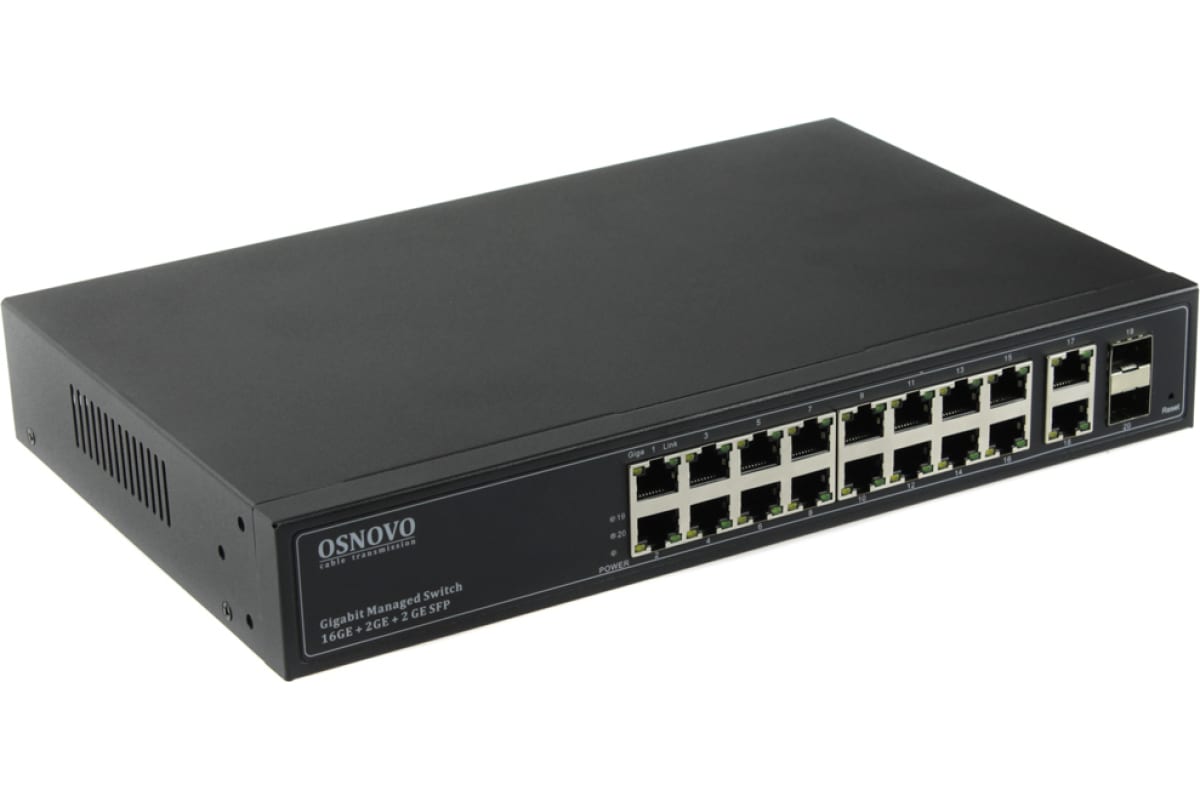 Технические характеристики OSNOVO Gigabit Ethernet управляемый на 18 RJ45 + 2 GE SFP порта sct1402
