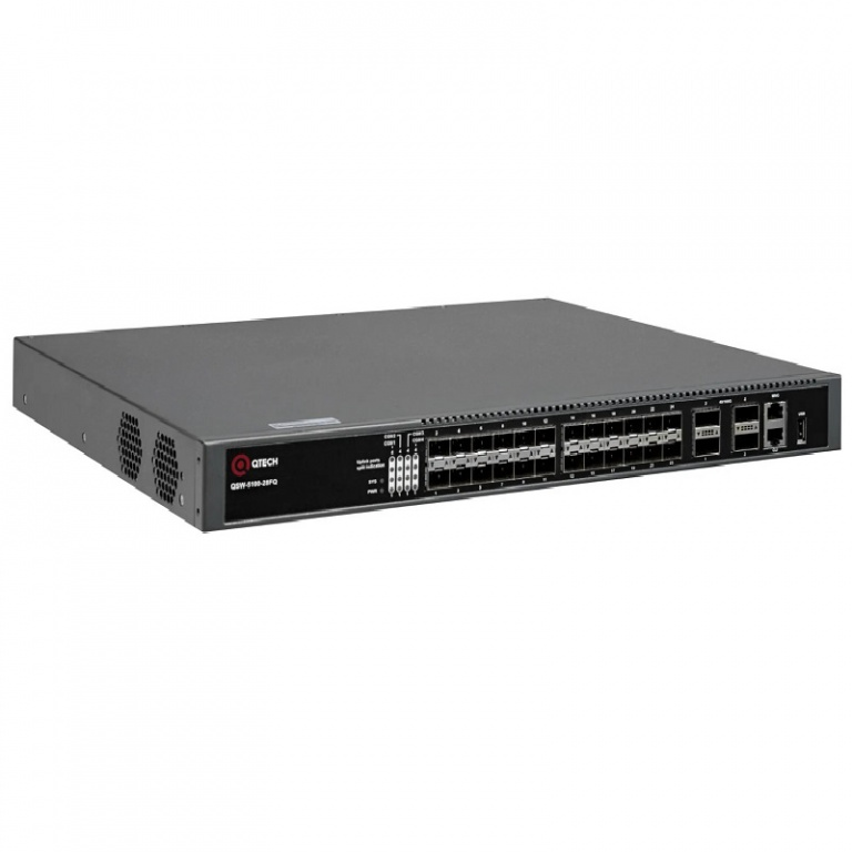 Дополнительно: QTECH Управляемый стекируемый коммутатор уровня L3, 24 порта 10GE SFP+, 4 порта 40GE/100GE QSFP28, 2 сменных БП (поставляются отдельно), разъем питания на задней панели, 220В AC