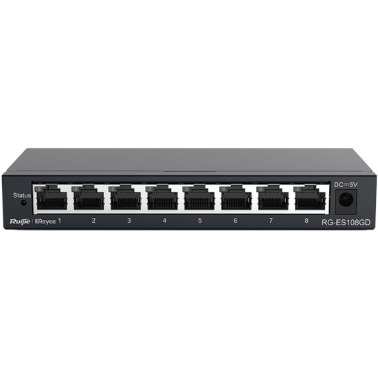 Коммутаторы Ruijie Reyee серий RG-ES105D/ RG-ES108D/ RG-ES105GD/ RG-ES108GD - это экономичные неуправляемые коммутаторы доступа в металлическом корпусе, предназначенные для малого и среднего бизнеса. Серия RG-ES100 поддерживает функцию Plug&Play, не требующую конфигурации, что позволяет удовлетворить требования различных вариантов использования, например, проводные и беспроводные сети. а также сети наблюдения.