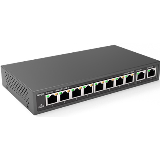 Количество портов коммутатора: 8-Port 100Mbps + 2 Uplink Port 1000Mbps, 8 PoE/PoE+