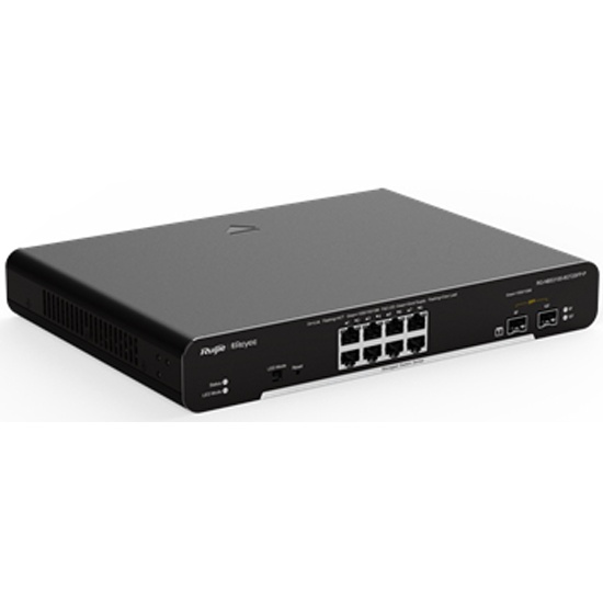 - Порты: 8 портов 10/100/1000Base-T с поддержкой PoE+, 2 uplink-порта SPF