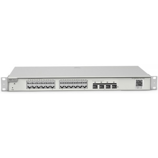 Smart коммутатор Ruijie RG-NBS5200-24GT4XS уровня Layer 2 Plus со скоростью коммутации 128Гб/с, таблица MAC-адресов составляет 16K, содержит 24 порта 1 Гб/с RJ-45, оснащен 4 слотами SFP+ 10 Гб/с.