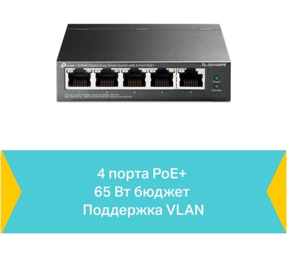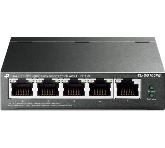 5-портовый коммутатор TP-Link easy smart, гигабитный TL-SG105PE полностью совместим с устройствами PoE, такими как IP‑камеры, точки доступа, IP‑телефоны. Также он работает с проводными устройствами без PoE, такими как ПК, принтеры и IPTV.