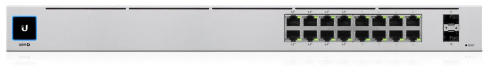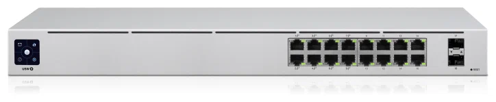 USW-16-POE 1 шт. Крепежные уголки для монтажа в коммутационную стойку ("уши") 2 шт. Винты для крепления крепежных уголков к устройству 8 шт. Винты для крепления устройства в коммутационную стойку 4 шт. Закладные гайки для крепления "ушей" в коммутационную стойку 4 шт. Кабель питания 1 шт. Краткое руководство пользователя 1 шт