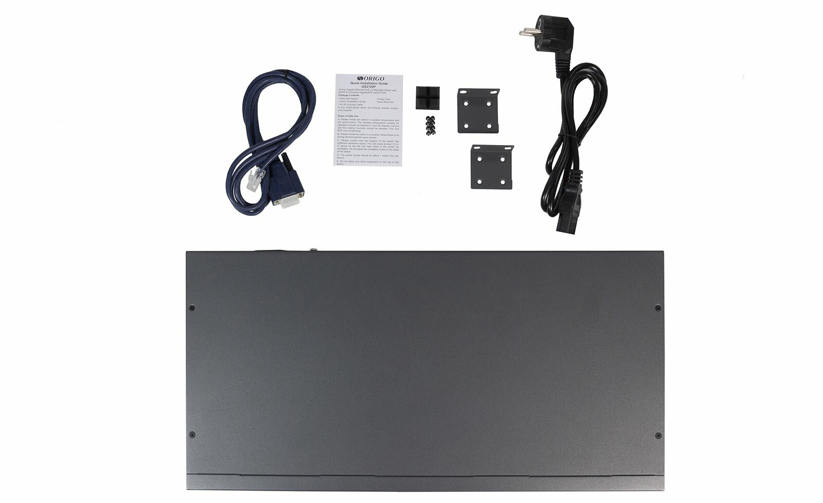 Коммутатор OS3120P,кабель питания,консольный кабель с разъемом RJ-45,комплект для установки в 19-дюймовую стойку,краткое руководство по установке