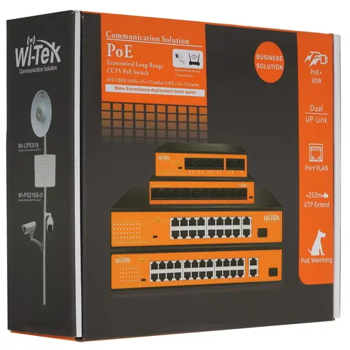 Коммутатор Wi-Tek WI-PS205H v2 находит применение при подключении IP-телефонов, IP-камер видеонаблюдения, точек доступа Wi-Fi и другого оборудования к высокоскоростному Интернету. Модель в настольном/настенном корпусе черного цвета является неуправляемой и производит коммутацию сразу после подключения оборудования, что делает ее удобной в эксплуатации. В ней предусмотрено шесть Ethernet-портов, среди которых 4 шт. поддерживают технологию PoE.
