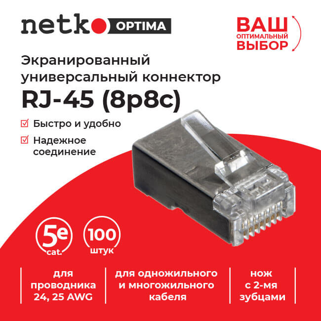 Коннектор Netko Optima NC-RJ-45-(8p8c)-ctn-10 RJ-45 8P8C категория 5e, 10 шт.