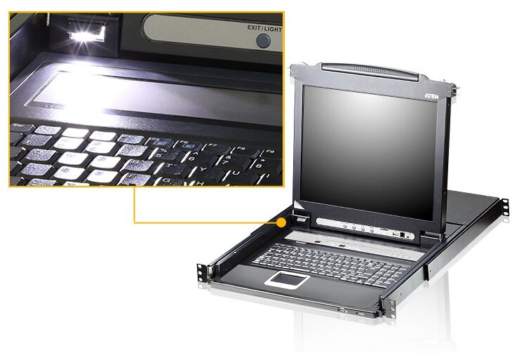 раскладками, 17” ЖК-дисплей, тач-пад в выдвижном корпусе высотой 1U,