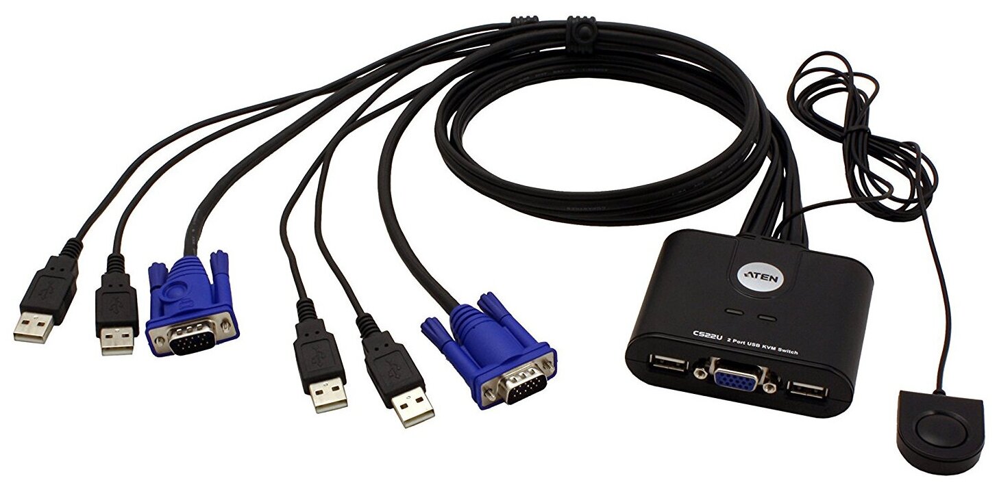 Компактный кабельный KVM-переключатель CS22U позволяет быстро переключаться между двумя ПК с интерфейсами VGA с помощью единой KVM-консоли, а также гибко совместно использовать носители информации, подключенные к ее USB-портам. Он поможет расширить рабочее пространство на столе, поддерживая его в чистоте и порядке, позволяя повысить производительность труда