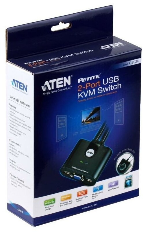 CS22U-AT – KVM переключатель ATEN CS22U со шнуром USB, обеспечивающий простой и быстрый способ выбора компьютеров с помощью встроенного удаленного переключателя порта. Это позволяет установить устройство CS22U в недоступном месте, в то время как удаленный переключатель порта может быть удобно расположен на столе. Компактная конструкция устройства CS22U делает его идеальным решением для многоплатформенных настольных систем с приложениями, требующих видео высокого разрешения.