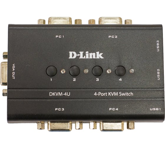 4-портовый kvm-переключатель d-link с портами vga и usb DKVM-4U/C2A позволяет осуществлять управление несколькими компьютерами в количестве до четырех с помощью одного монитора, одной клавиатуры и одной мыши. Не требует установки драйвера и подключения внешнего адаптера питания.