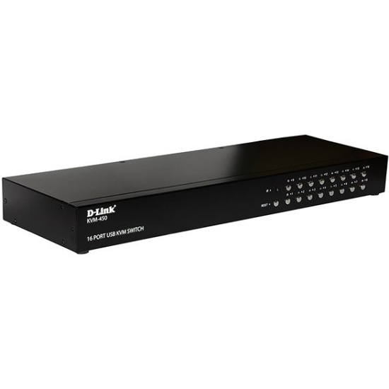 16-портовый KVM-переключатель с портами VGA и 3 портами USB D-Link KVM-450 позволяет осуществлять управление несколькими компьютерами в количестве до шестнадцати с помощью одного монитора, одной клавиатуры и одной мыши. KVM-450 не требует установки драйвера и может работать без подключения внешнего адаптера питания, питаясь от порта USB на ПК (входящий в комплект поставки адаптер питания может использоваться при подключении к порту USB на KVM-450 внешнего устройства, например USB-диска). Данный KVM-переключатель поддерживает возможность «горячего» подключения - выполнять установку устройства можно не выключая компьютеры. KVM-450 позволяет быстро и просто переключаться между компьютерами с помощью кнопок, расположенных на передней панели устройства, или пульта дистанционного управления. Устройство поддерживает режим автоматического сканирования, который позволяет автоматически переключиться на следующий ПК по истечении определенного интервала времени. Данный KVM-переключатель может быть установлен в 19-дюймовую стойку с помощью входящих в комплект поставки кронштейнов