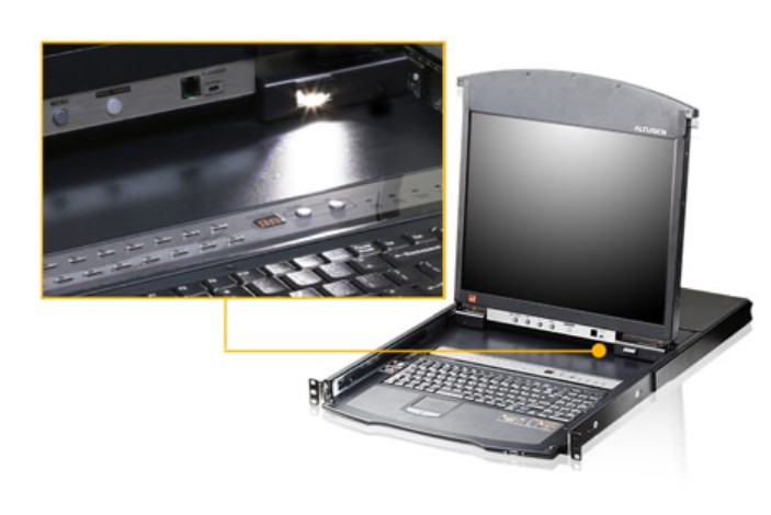 Переключатель консоли электронный, 8 портов PS/2, ж/к экран 19", клав. рус/лат.(Макс. разрешение 1280*1024, макс.частота верт. развертки 75Hz, зерно 0.264*0.264мм, якрость 300кд/м2) c IP доступом/ 8P CAT-5 DUAL RAIL LCD KVM OVER IP SW 19INCH