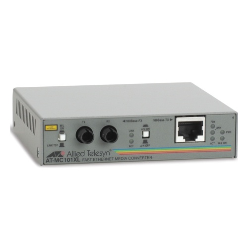 Allied Telesis AT-MC101XL медиаконвертер Fast Ethernet от Allied Telesis представляет собой полноценное семейство устройств преобразования среды передачи данных, позволяющих пользователям увеличить дальность сетевых соединений на основе неэкранированной витой пары за счет использования оптоволоконных кабелей. Благодаря наличию оптических разъемов SC и ST эти конвертеры можно использовать для увеличения протяженности сетевых соединений до 2 км при использовании многомодового оптоволокна и до 40 км при использовании одномодового оптоволокна.