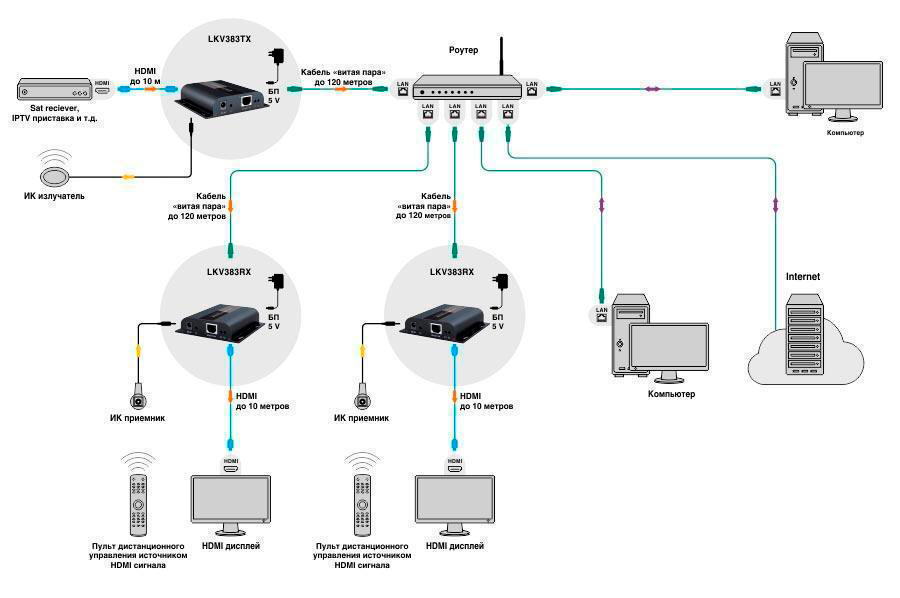 cat5: 80 м, cat5e: 100 м, cat6: 120 м