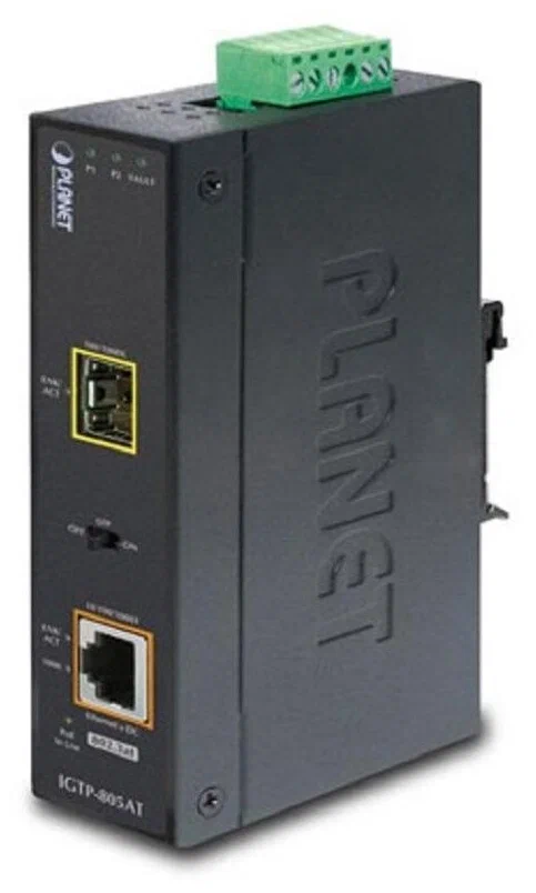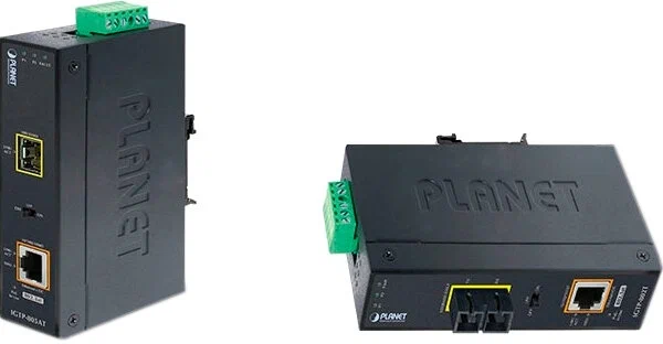 Промышленные гигабитные медиаконвертеры PLANET IGTP-802T/IGTP-802TS/IGTP-805AT сочетатают в себе преобразование среды Ethernet с 1000BASE-X на 10/100/1000BASE-T со встроенным инжектором 802.3 at PoE+ для обеспечения выходной мощности до 30 Вт.