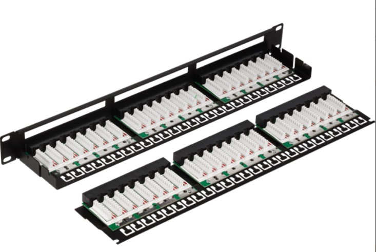 Патч-панель обеспечивает высокую плотность размещения портов RJ-45, а именно 48 портов на 1U. Площадка с верхним рядом портов съемная, чтобы было удобно работать с конструкцией в процессе монтажа.