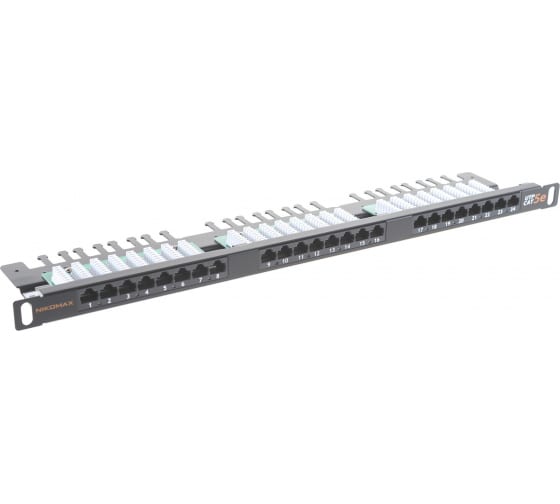 Панель NIKOMAX 19, 0.5U, 24 порта, Кат. 5е, черная NMC-RP24UD2-HU-BK - коммутационное изделие для монтажа кабелей. Применяется при формировании подсистем СКС и подключения отдельных составляющих сети друг к другу с использованием коммутационных шнуров. Данная модель патч-панели состоит из 24 портов RJ45/8P8C при высоте всего 0,5U, что обеспечивает высокую плотность портов и позволяет закрепить ее в ограниченном пространстве шкафа или стойки.