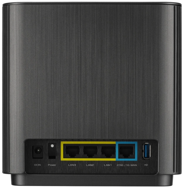 Поддержка AiMesh. 2.4ГГц 2x2 574Mbps, 5ГГц-1 2x2 2402Mbps, 5ГГц-2 4x4 4804Mbps. Область покрытия - до 265кв.м.