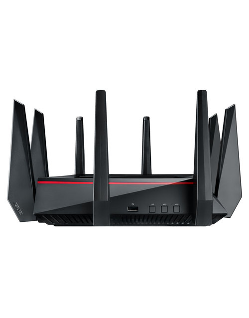 Описание ASUS RT-AC5300 — это, фактически, три маршрутизатора в одном корпусе. Два работают в диапазоне 5 ГГц (на скорости до 2167 Мбит/с каждый), а третий — в диапазоне 2,4 МГц (1000 Мбит/с), причем все это функционирует одновременно, обеспечивая высочайшую скорость передачи данных.