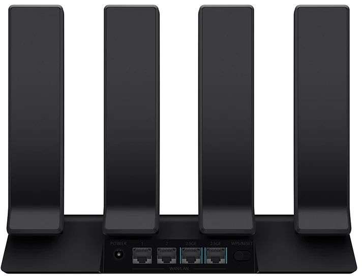 Для подключения проводных устройств роутер оснащен четырьмя портами WAN/LAN, два из которых поддерживают скорость до 1 Гбит/с, а еще два – до 2.5 Гбит/с. Это делает его отличным решением для тех, кто ценит не только беспроводное, но и проводное соединение, например, для подключения игровых ПК, NAS-серверов или медиацентров.