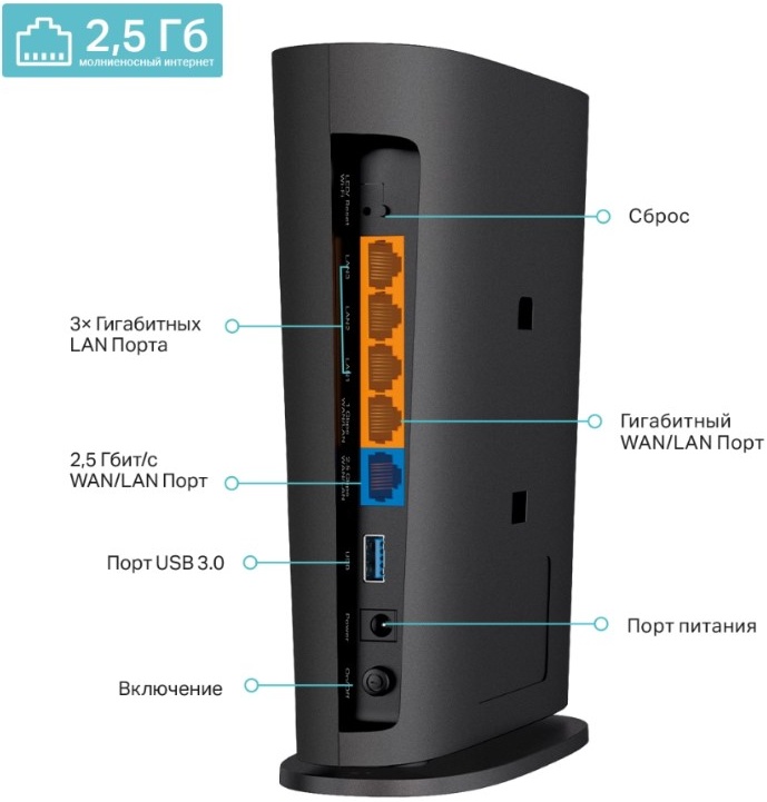 • Порт WAN/LAN 2,5 Гбит/с • Гигабитный порт WAN/LAN • Гигабитный порт LAN (3 шт.)