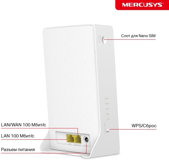 Интерфейсы: Порт WAN/LAN 10/100 Мбит/с, Порт LAN 10/100 Мбит/с, Слот для карты nano-SIM