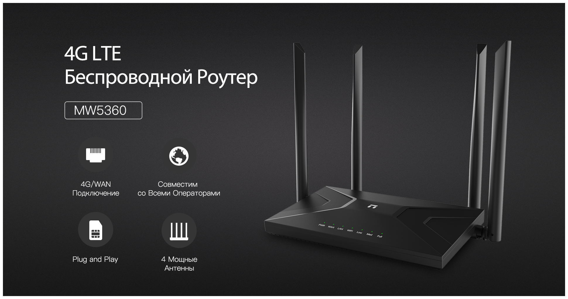 Скорость передачи: 802.11n: 40MHz (300Мбит/с, 270Мбит/с, 240Мбит/с, 180Мбит/с, 120Мбит/с, 90Мбит/с, 60Мбит/с, 30Мбит/с) 20MHz (144Мбит/с, 130Мбит/с, 115Мбит/с, 86Мбит/с, 57Мбит/с, 43Мбит/с, 28Мбит/с, 14Мбит/с) (Auto-Sense) 802.11g: (54Мбит/с, 48Мбит/с, 36Мбит/с, 24Мбит/с, 18Мбит/с, 12Мбит/с, 11Мбит/с, 9Мбит/с, 6Мбит/с) 802.11b: (11Мбит/с, 9Мбит/с, 6Мбит/с, 5.5Мбит/с, 2Мбит/с, 1Мбит/с) гостевые сети: Multi-SSID; LTE band: FDD-LTE:B1/B3/B5/B8, TDD-LTE: B38/B39/B40/B41, HSPA/UMTS:B1/B5/B8, GSM/GPRS/EDGE:B3/B8, TD-SCDMA:B34/B39, EVDO/CDMA:BC0, Режимы: FDD-LTE, TDD-LTE, TD-SCDMA, HSPA+, HSUPA, HSDPA, UMTS, EVDO, EDGE, GPRS, GSM, CDMA1x Скорость модема: FDD-LTE: 150 Мбит/с DL, 50 Мбит/с UL TDD-LTE: 132 Мбит/с DL, 30 Мбит/с UL, TD-HSUPA:2.8Мбит/с, DL TD-HSUPA:2.2Мбит/с UL, DC-HSPA+:42 Мбит/с DL, HSPA+:21 Мбит/с DL, HSUPA:5.76Мбит/с UL, WCDMA: 384 Kbps DL, 384Kbps UL, CDMA2000 EVDO: 3.1Мбит/с DL, 1.8Мбит/с UL EDGE: 237 Kbps DL, 118Kbps UL; Стандарты: IEEE 802.11b, IEEE 802.11g, IEEE 802.11n IEEE 802.3 10Base-T, IEEE 802.3u 100Base-TX Интерфейсы: 1*10/100Мбит/с Auto MDI/MDIX RJ45 WAN port, 2*10/100Мбит/с, Auto MDI/MDIX RJ45 LAN port, слот для SIM-карт LED индикаторы: Power, LAN All, WiFi/WPS,EWAN, LTE Strong, LTE Middle, LTE, Weak Адаптер питания: DC 12V/1.0A(Output) WAN типы подключения: WAN: DHCP / Static IP / PPPoE / Russia PPPoE / L2TP / PPTP / 3G&4G Сертификаты FCC, CE, EAC