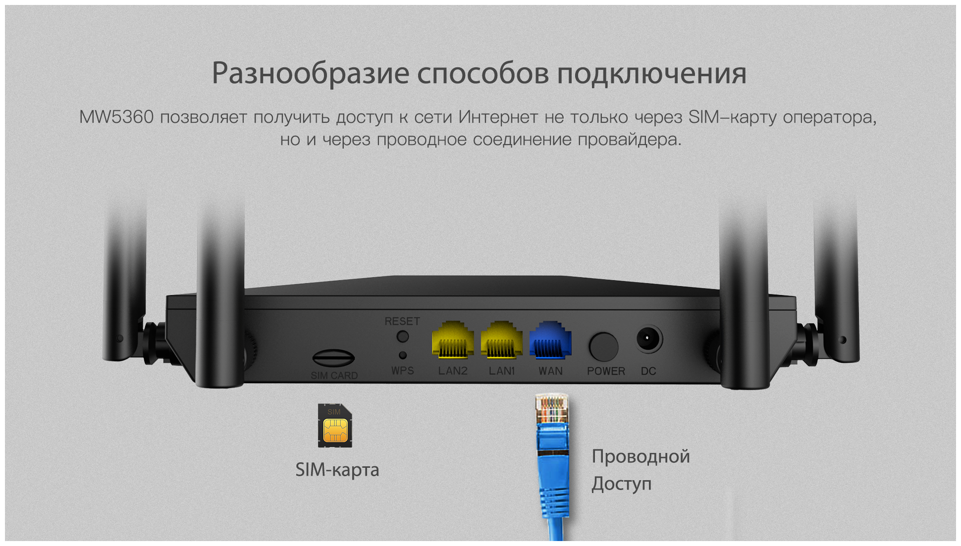 Подключение к интернету (WAN) Ethernet RJ-45, SIM-карта