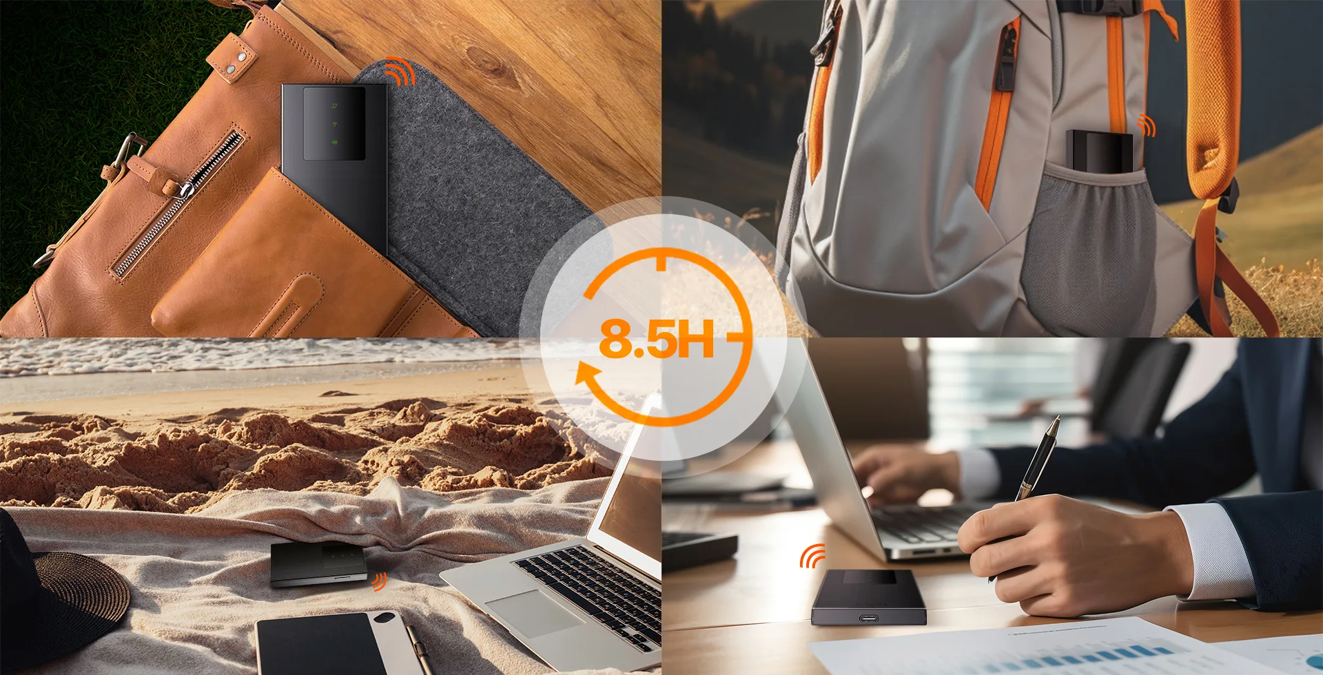 Это портативное мобильное устройство Wi-Fi 4G LTE, использующее технологию Wi-Fi 6 и обеспечивающее скорость Wi-Fi до 300 Мбит/с. Оно оснащено аккумулятором большой емкости и удобным разъемом для зарядки USB-C. Кроме того, он совместим с более чем 4100 операторами по всему миру, подключай и работай. Он станет идеальным спутником в ваших путешествиях, мероприятиях на свежем воздухе и деловых поездках.