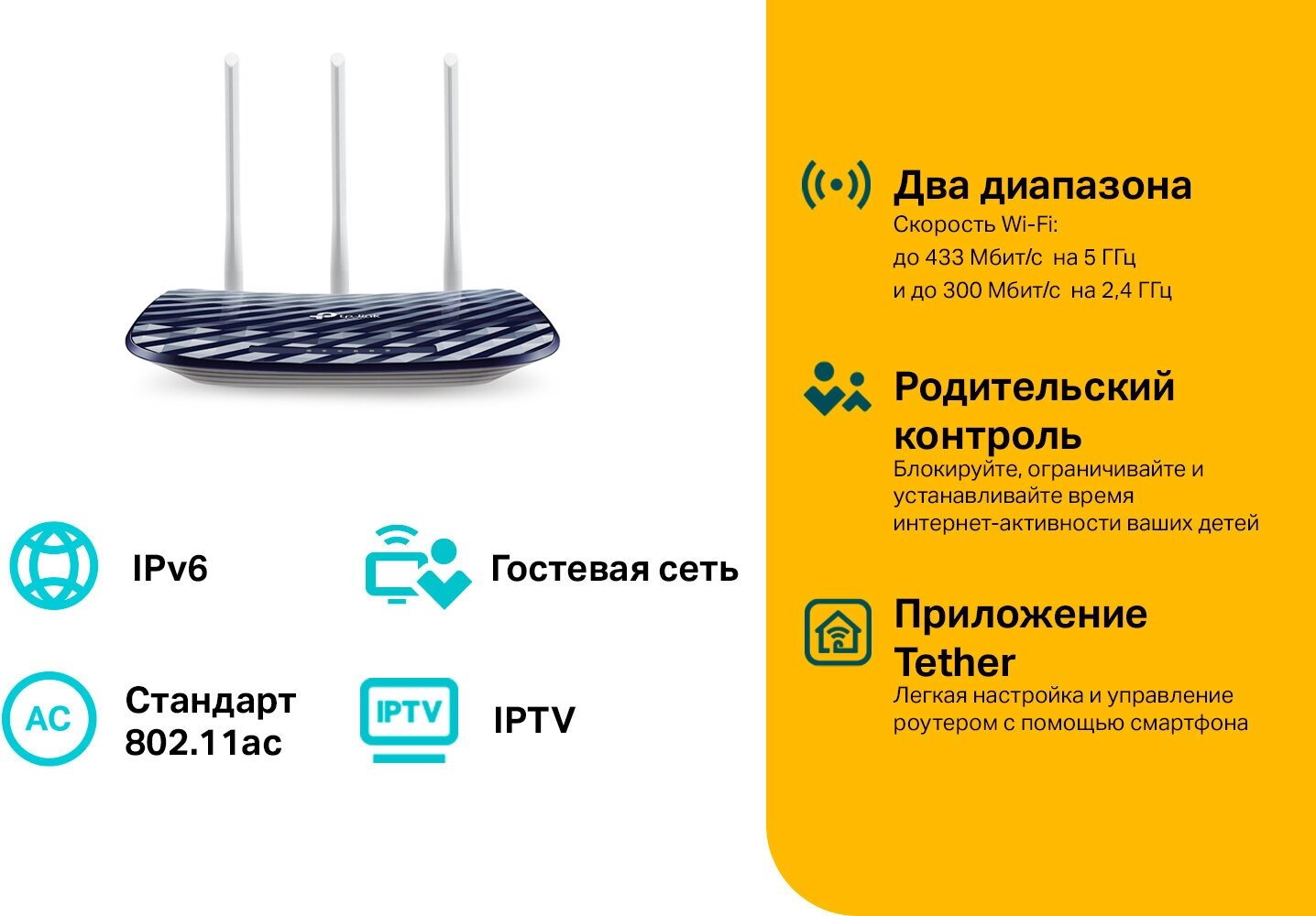 мощность передатчика: 20 dBm; гостевая сеть; тип внешней антенны: несъемная; поддержка SNMP; Web-интерфейс; внешний источник питания: 9 В / 0,6 А; две антенны 2,4 ГГц, одна антенна 5 ГГц; родительский контроль, контроль локального управления, список узлов, доступ по расписанию, управление правилами