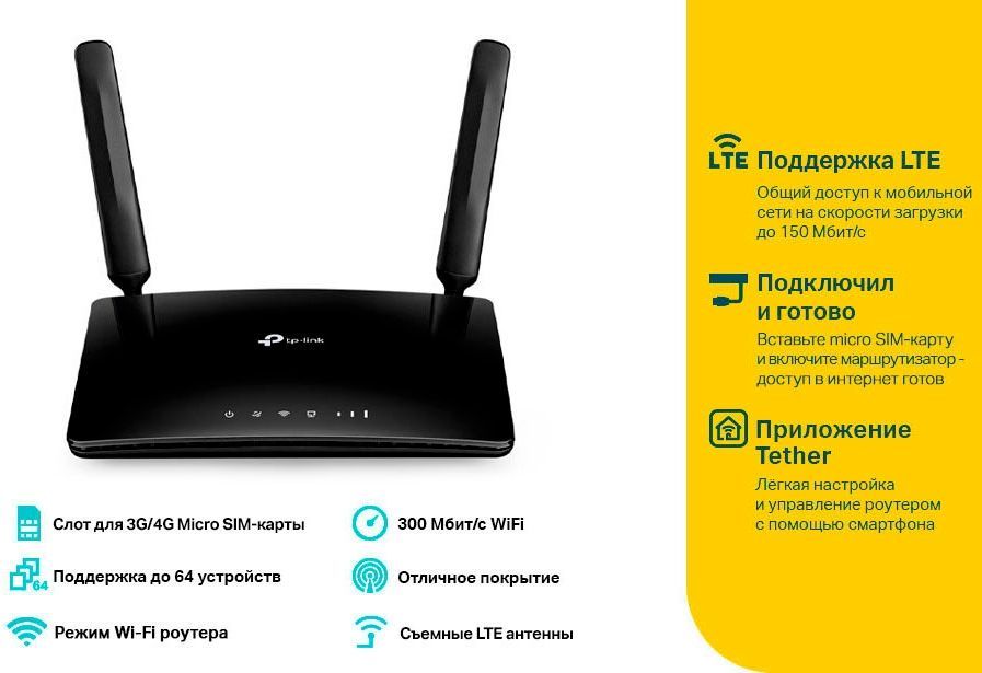 Прочие характеристики: Благодаря удобному веб-интерфейсу и мощному приложению Tether настройка TL-MR150 происходит за несколько минут.
