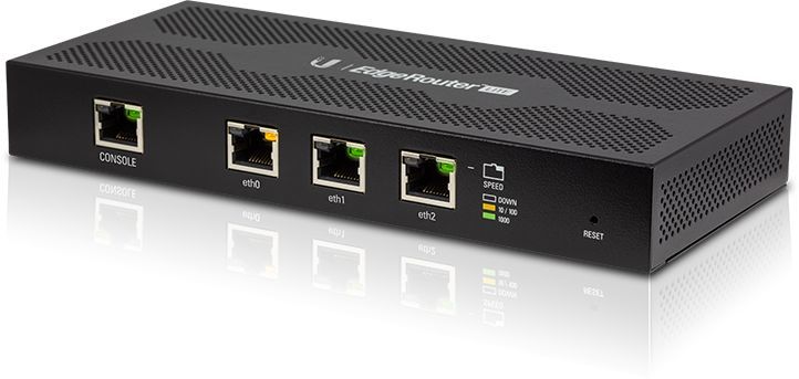 Описание EdgeRouter Lite — базовая модель линейки высокопроизводительных роутеров Ubiquiti. На борту устройства три LAN-порта, с пропускной способностью 1 Гбит, каждый из которых может быть работать как отдельно так и в группе, обеспечивая исключительную скорость работы системы.