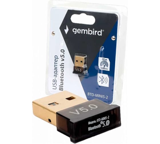 Адаптер Bluetooth Gembird BTD-MINI5-2, ультратонкий корпус, v.5.0, 10 метров, USBBTD-MINI5-2 с поддержкой ОС windows 2000, XP, Vista, windows 7/8/10. Усиление (типовое) 0,8 Дб. Антенна внутренняя. Радиус действия до 20 м. Скорость передачи данных до 3 Мбит/с. Версия Bluetooth: v 5.0, обратная совместимость с v 4.0 или более ранней версией.