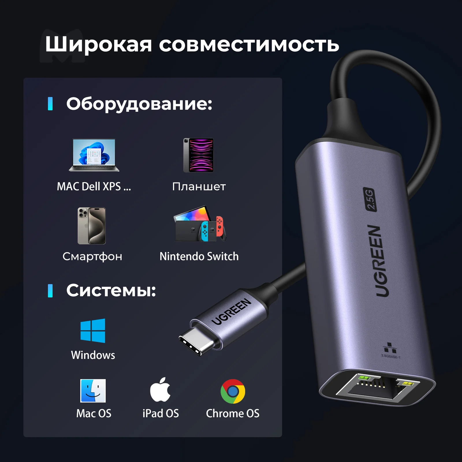 USB-концентратор UGREEN обеспечивает стабильное и надежное соединение Ethernet.