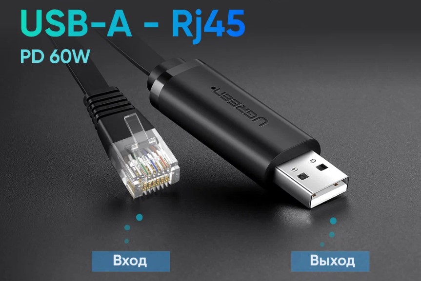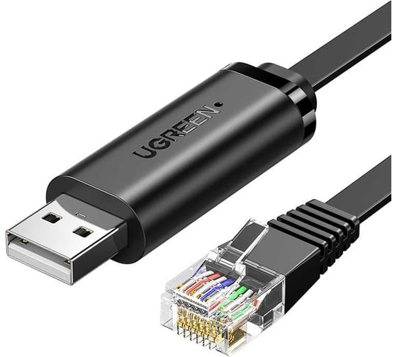 Консольный кабель USB-RJ45 напрямую подключает компьютер или ноутбук через USB-порт к сетевому коммутатору, маршрутизатору и т. д. с консольным портом. Адаптер RS232/DB9 не требуется.