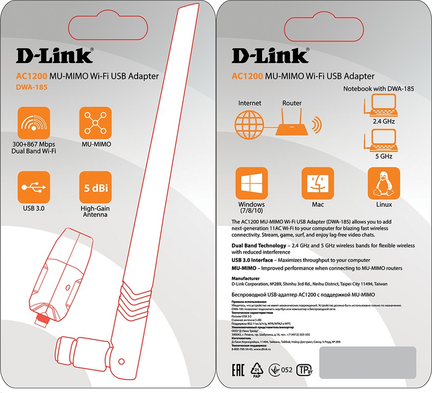 описание Wi-Fi адаптер DWA-185 от компании D-Link.