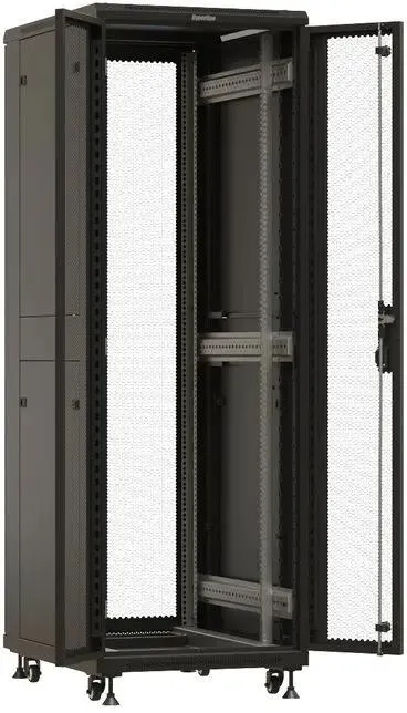 Особенности: Обеспечивает монтаж оборудования по 19" стандарту. Используется для напольного монтажа внутри помещений. Передние двери доступны в стеклянном и металлическом исполнениях. Перфорация 75% металлических дверей обеспечивает отличную вентиляцию. Передние и задние двери оснащены удобной ручкой и индивидуальным замком. Съемные боковые панели закрываются защелками и цилиндрическими замками. Съемные заглушки для установки фальшпанелей и ввода кабелей в полу и крыше. Конструкция крыши с простым и удобным монтажом вентиляторных модулей При размещении тяжелого оборудования шкаф можно установить на цоколь. Для соединения шкафов в ряд приобретаются дополнительные крепления. В комплекте ножки и высокопрочные ролики для перемещения шкафа. Поставляется в разобранном виде в плоской картонной упаковке