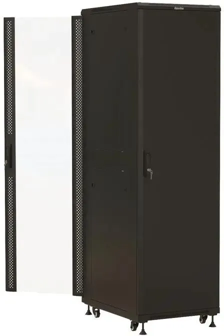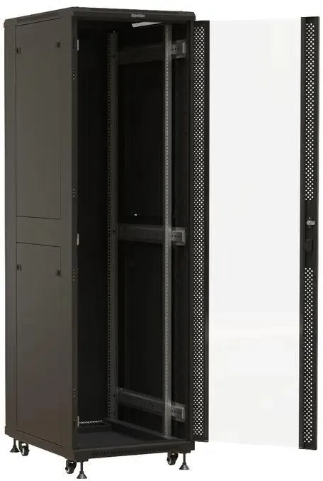 Комплект поставки: Сборный каркас: передняя и задняя рамы каркаса Верхняя и нижняя панели каркаса (крыша и пол) Щеточный кабельный ввод - 1 шт. (для установки в верхнюю или нижнюю панель) Передняя и задняя двери (в комплекте с ручками и замками) Съемные боковые панели с защелками и замками - 2 шт. 19" монтажные профили - 4 шт. Горизонтальные монтажные профили - 6 шт. Регулируемые ножки - 4 шт. Транспортировочные ролики - 4 шт. Крепежный комплект (винты, гайки, шайбы) Комплект заземления (кабели, гайки, шайбы)
