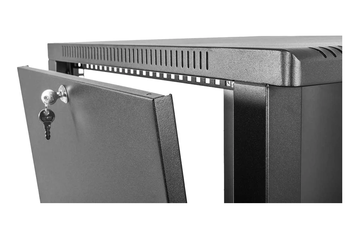 Настенный шкаф 19" ШРН имеет цельнометаллическую сварную конструкцию, он удобен для быстрой установки и монтажа оборудования, так как не требует сборки. Отсутствие острых углов с фронтальной стороны повышают безопасность при эксплуатации и обслуживании шкафов, что помогает исключить человеческие травмы при соприкосновении со шкафом.