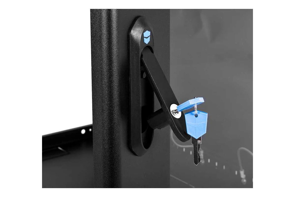 Настенный шкаф 19" ШРН имеет цельнометаллическую сварную конструкцию, он удобен для быстрой установки и монтажа оборудования, так как не требует сборки. Отсутствие острых углов с фронтальной стороны повышают безопасность при эксплуатации и обслуживании шкафов, что помогает исключить человеческие травмы при соприкосновении со шкафом. Комплектация дверью с тонированным ударопрочным стеклом. Новая конструкция стеклянной двери с механическим креплением стекла увеличивает её жесткость, и обеспечивает легкую замену стекла при его повреждении. Возможна установка двери, как с правой, так и с левой стороны. Новый усиленный точечный замок с поворотной ручкой увеличивает жесткость фиксации двери в закрытом положении и защиту от несанкционированного доступа, а также обеспечивает удобство при её открывании.
