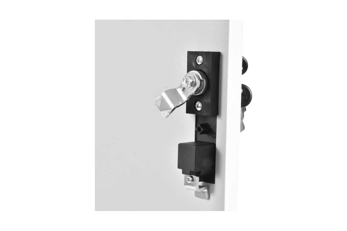 Настенный шкаф 19" ШРН имеет цельнометаллическую сварную конструкцию, он удобен для быстрой установки и монтажа оборудования, так как не требует сборки. Отсутствие острых углов с фронтальной стороны повышают безопасность при эксплуатации и обслуживании шкафов, что помогает исключить человеческие травмы при соприкосновении со шкафом. Комплектация со сплошной металлической дверью. Возможна установка двери, как с правой, так и с левой стороны. Новый усиленный точечный замок с поворотной ручкой увеличивает жесткость фиксации двери в закрытом положении и защиту от несанкционированного доступа, а также обеспечивает удобство при её открывании.