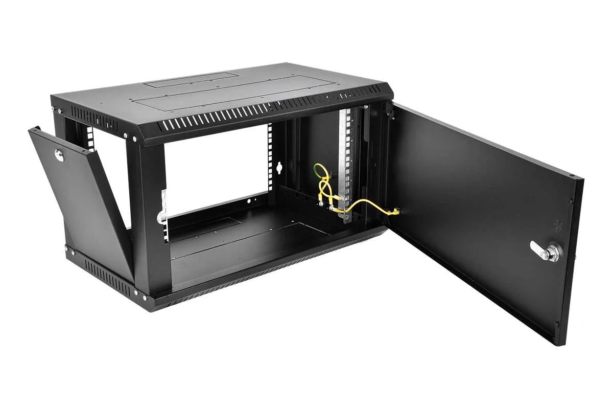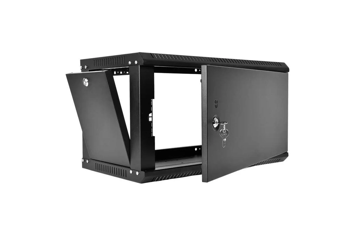 Настенный шкаф 19" ШРН имеет цельнометаллическую сварную конструкцию, он удобен для быстрой установки и монтажа оборудования, так как не требует сборки. Отсутствие острых углов с фронтальной стороны повышают безопасность при эксплуатации и обслуживании шкафов, что помогает исключить человеческие травмы при соприкосновении со шкафом. Комплектация со сплошной металлической дверью. Возможна установка двери, как с правой, так и с левой стороны. Новый усиленный точечный замок с поворотной ручкой увеличивает жесткость фиксации двери в закрытом положении и защиту от несанкционированного доступа, а также обеспечивает удобство при её открывании.
