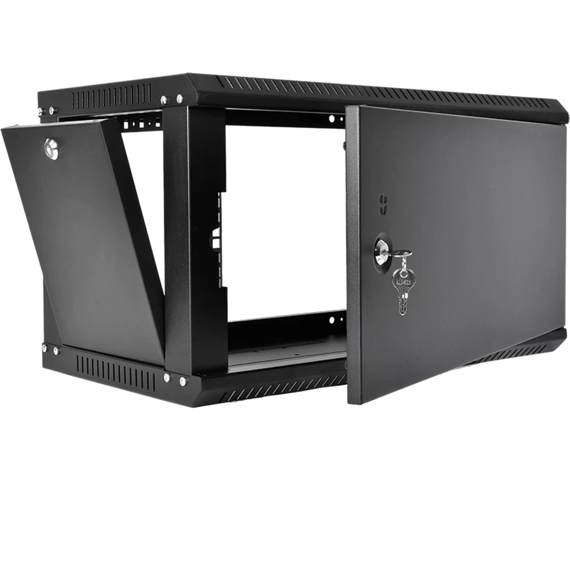 Настенный шкаф 19" ШРН имеет цельнометаллическую сварную конструкцию, он удобен для быстрой установки и монтажа оборудования, так как не требует сборки. Отсутствие острых углов с фронтальной стороны повышают безопасность при эксплуатации и обслуживании шкафов, что помогает исключить человеческие травмы при соприкосновении со шкафом. Комплектация со сплошной металлической дверью. Возможна установка двери, как с правой, так и с левой стороны. Новый усиленный точечный замок с поворотной ручкой увеличивает жесткость фиксации двери в закрытом положении и защиту от несанкционированного доступа, а также обеспечивает удобство при её открывании.
